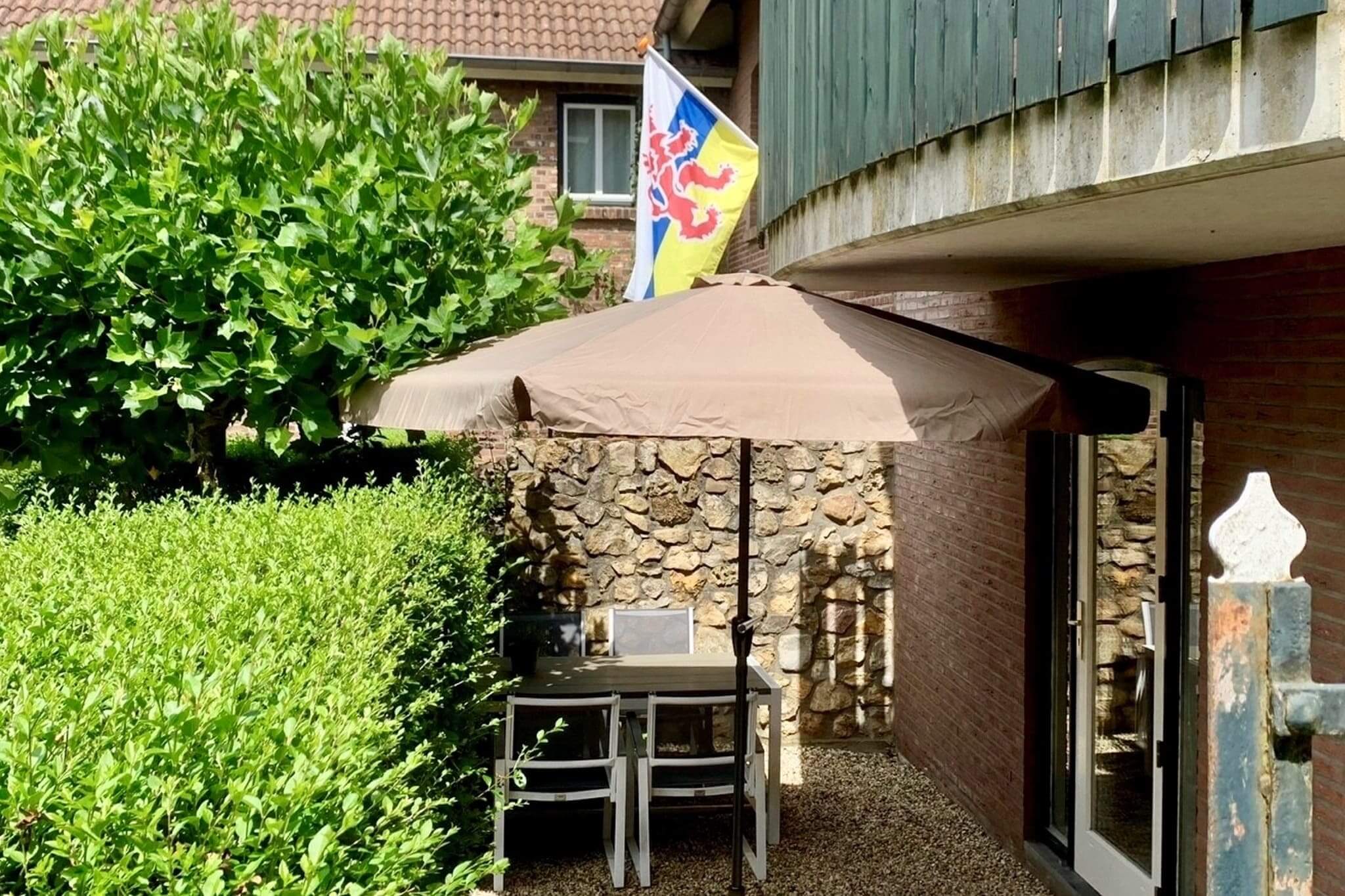 Aan de voorkant op plein een eigen afgeschermd terras met tuinset waar je heerlijk kunt ontspannen, ontbijten of dineren.