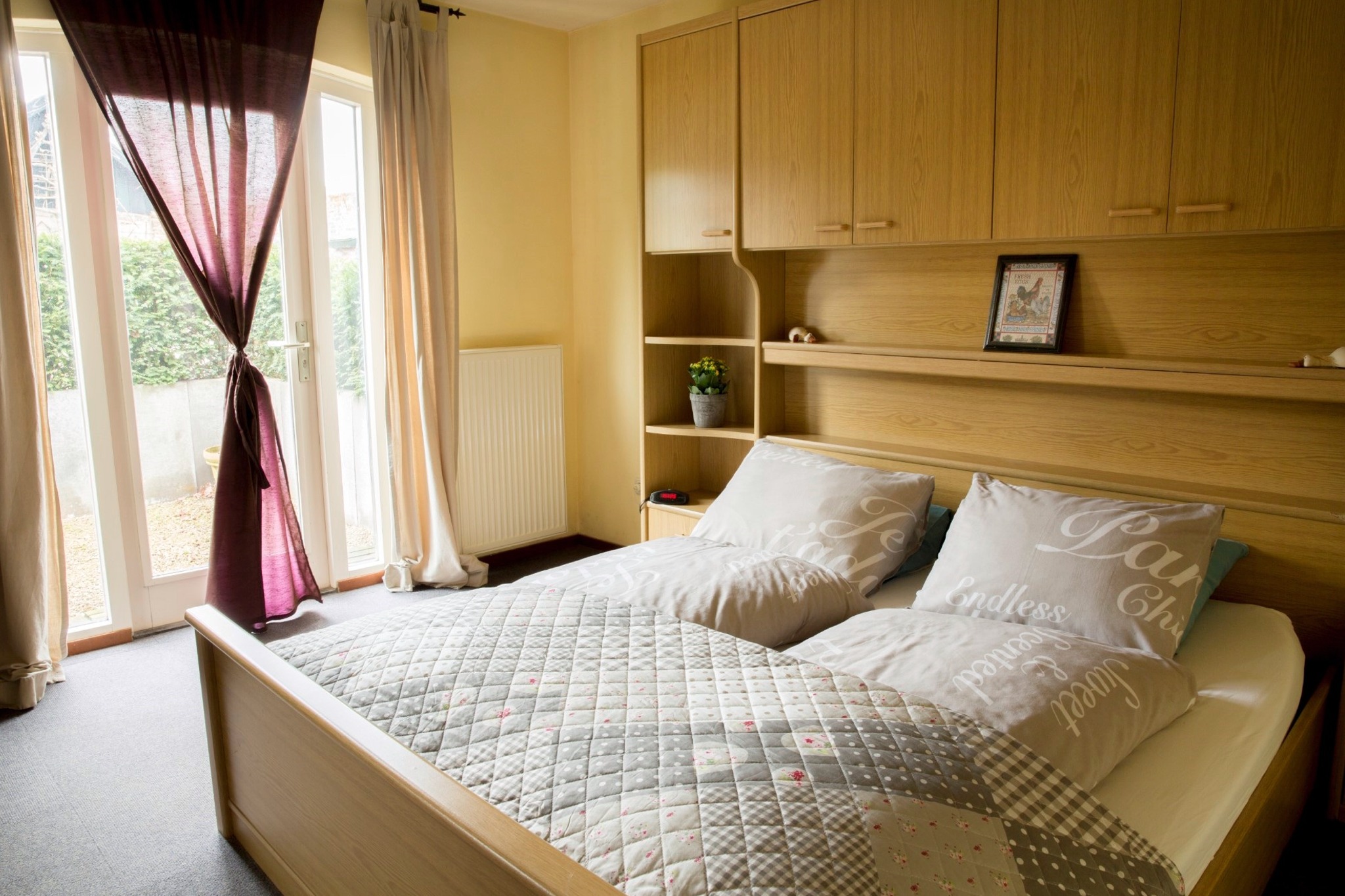 Comfortabele grote slaapkamer met een heerlijk twee-persoons bed met 2e eigen terrasje aan de slaapkamer.