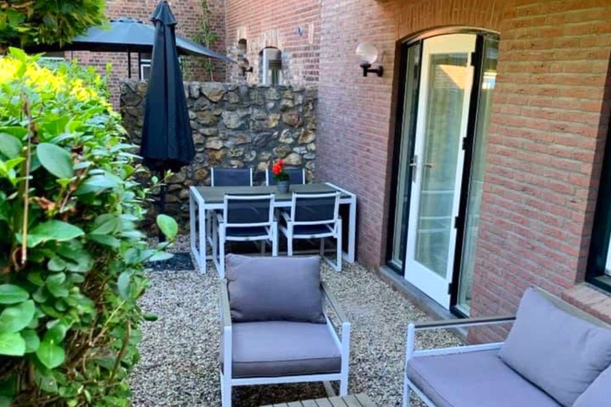 Eigen afgeschermd dakterras met tuinset waar je heerlijk kunt ontspannen, ontbijten of dineren.